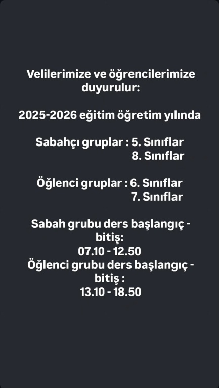 2025-2026 Eğitim- Öğretim Yılında Şehit Halit Ortaokulu olarak ders giriş çıkış saatlerimiz ve sabahçı ve öğlenci sınıf gruplarımızı belli olmuştur!
